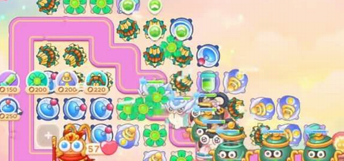 5、兔子来袭一侧需建造更多炮塔以提升整体输出能力,由于毒针和风扇的组合作用,滑板兔威胁得以有效控制。善用游戏暂停功能进行建造调整,在桃子经过路径提前部署炮塔,确保无缝衔接防御链。